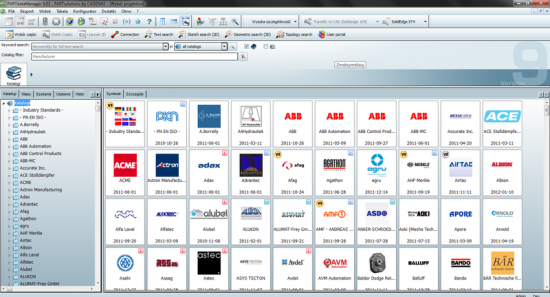 - Uzyskasz dostęp do modeli wyrobów (części i zespołów) będących w ofercie ponad 500 światowych producentów (np. FESTO, FCPK BYTÓW, SKF, FAG, ITEM, AMF i inni) i opisanych wieloma rodzajami norm (np. PN, DIN, ISO, ANSI, GOST i inne).