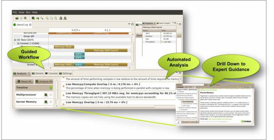 „Nowe narzędzie Visual Profiler jest czymś wyjątkowym,” twierdzi Joshua Anderson, główny programista projektu HOOMD-blue, który tworzy otwarte oprogramowanie do obliczeń z dziedziny dynamiki molekularnej. „Wystarczy kilka kliknięć, a program automatycznie przeprowadzi analizę wydajności mojej aplikacji i wyróżni problematyczne segmenty kodu, jednocześnie wyświetlając łącza do artykułów zawierających informacje pomocne w ich rozwiązaniu. Dzięki takiemu rozwiązaniu każdy deweloper prosto i szybko przyśpieszy własne aplikacje.”