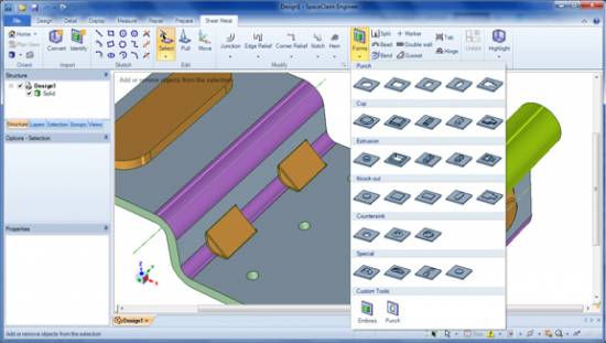 SpaceClaim to niezwykle inteligentne narzędzie do projektowania 3D powstało w celu optymalizacji oraz tworzenia płaskich rozwinięć części cienkościennych (sheet metal) tak szybko jak to tylko możliwe. W ostatnich latach zespół SpaceClaim ściśle pracował z ekspertami od konstrukcji blachowych, aby wprowadzić specjalistyczne narzędzia, które umożliwiają współpracę z nowoczesnymi maszynami CNC.