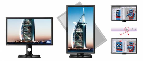 Wąskie ramki naokoło ekranu powodują, że z monitorów BL2710PT buduje się bardzo wygodne dwu- lub trójmonitorowe stanowiska dla projektanta. Duży zakres regulacji ekranu – pochylanie, podwyższanie i obniżanie oraz obrót do pionu (pivot) znakomicie zwiększają komfort pracy.