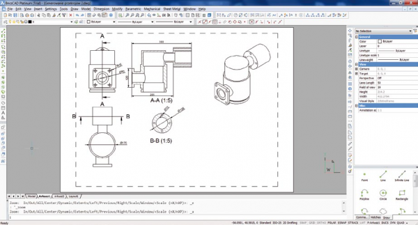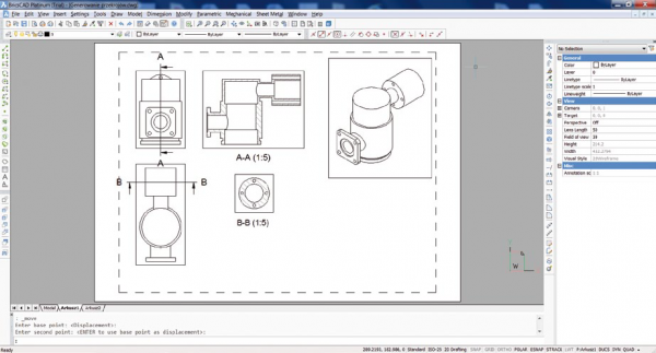Po przejściu na zakładkę zawierającą dokumentację płaską w BricsCAD rzuty zostają od razu zaktualizowane i dokładnie odzwierciedlają nową geometrię. Powoduje to duże oszczędności czasu marnowanego zwykle na ręczne tworzenie aktualizacji, ale daje również pewność, że dokumentacja, która jest utworzona, odzwierciedla w pełni zmiany dokonane w modelu. Redukuje to również do minimum ryzyko nieaktualności dokumentacji 2D w stosunku do modeli 3D, co jest bardzo ważne szczególnie dla produkcji, gdzie rysunek płaski jest najważniejszym źródłem informacji o produkcie.